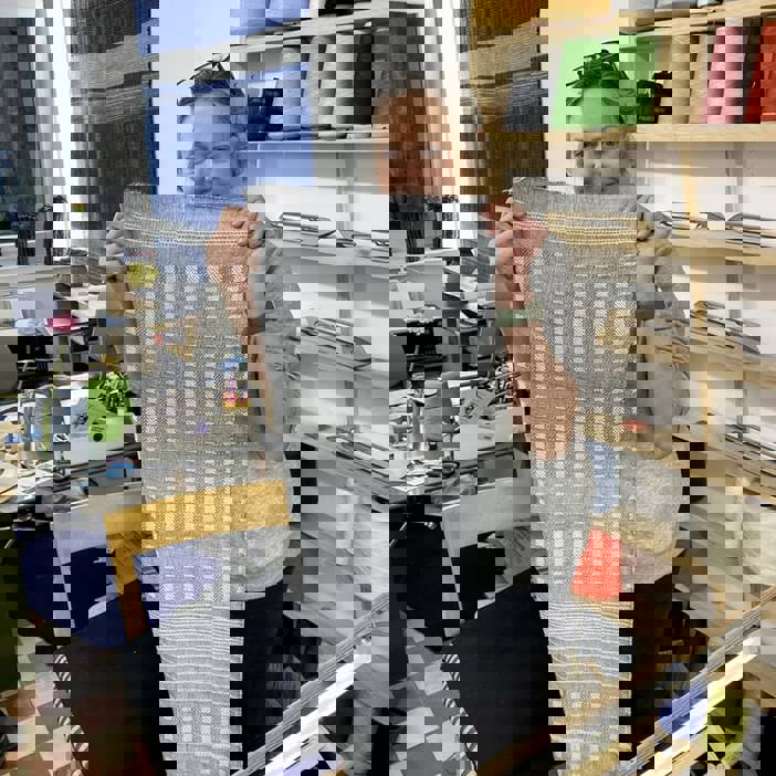 Andreas Möller ist kein gewöhnlicher Weber – er ist ein weltweit gefragter Visionär. Was mit Pappe und Fingern begann, führte den Hamburger heute an die Weltspitze seines Fachs. Er bricht mit Traditionen, entwickelt eigene Webstühle und lehrt seine Methoden rund um den Globus, sogar im Auftrag der UN. Trotz seiner internationalen Erfolge und zahlreicher Preise ist Andreas ein nahbarer Lehrer geblieben, der sein Wissen voller Leidenschaft teilt. Wer ihn in seinem Atelier besucht, trifft auf einen Meister, der das Weben nicht nur als Handwerk, sondern als Lebensphilosophie versteht und seine Gäste mit seiner Begeisterung sofort ansteckt.